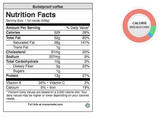 According to Chron-O-Meter, which is the calorie tracking tool I use for my ketogenic diet, this mix is:
